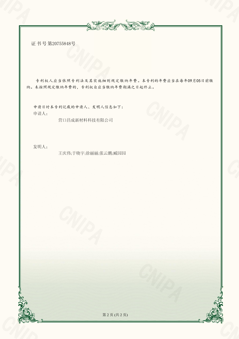 Copyright(C)2021,Yingkou Changcheng New Material Technology Co., Ltd. All Rights Reserved.